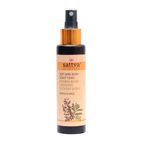 Wcierka SATTVA HENNA I AMLA, to wyjątkowa kompozycja aloesu, henny, amli, ekstraktu z kozieradki, gorczycy, papryki oraz drzewa sandałowego.